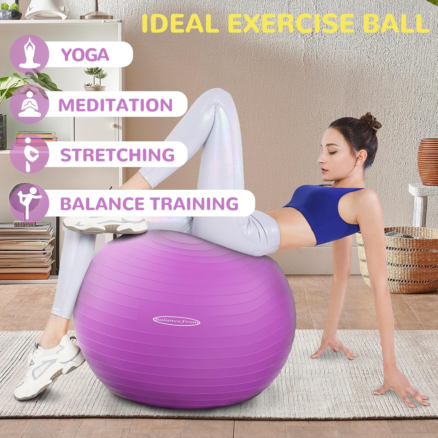 Anti-Burst Exercise Yoga Ball Slip Resistant Fitness Ball with Quick Foot Pump | 2,000 lbs Capacity, Multiple Sizes & Colors