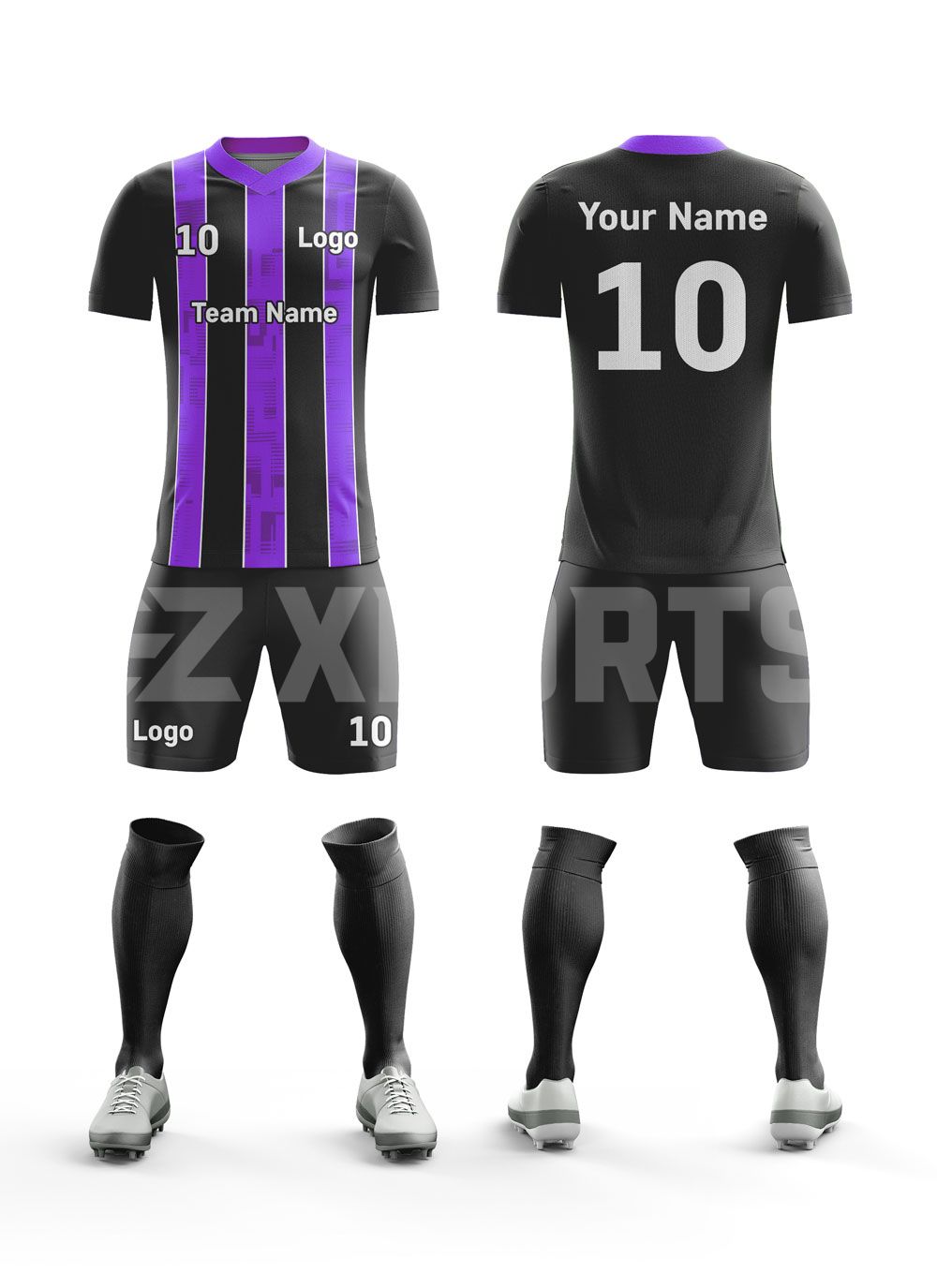 Super comfy and durable soccer uniforms. Custom Soccer set includes a jersey, shorts, and a pair of socks. Look sharp and professional in our lightweight and breathable uniforms. Uniforms can be customized with any design and color, fabric customization is also available.