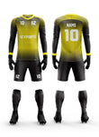 Durable and comfortable. Custom Goalkeeper set includes a jersey, shorts, and a pair of socks. Made with lightweight custom-knitted polyester fabric. All uniforms can be customized with any design and color, and fabric customization is also available.