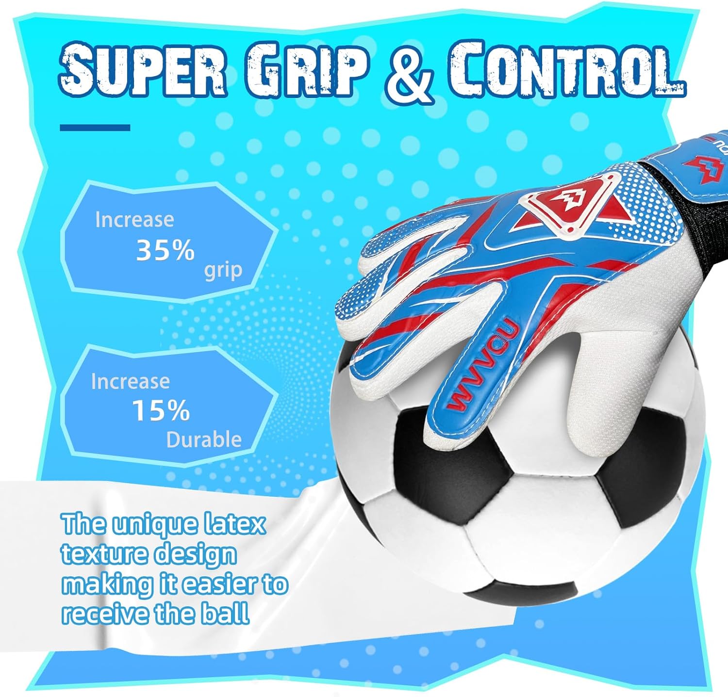 Goalkeeper Gloves for Kids Youth, Soccer Goalie Gloves with Double Protection, Anti-Slip Soccer Gloves, Super Grip